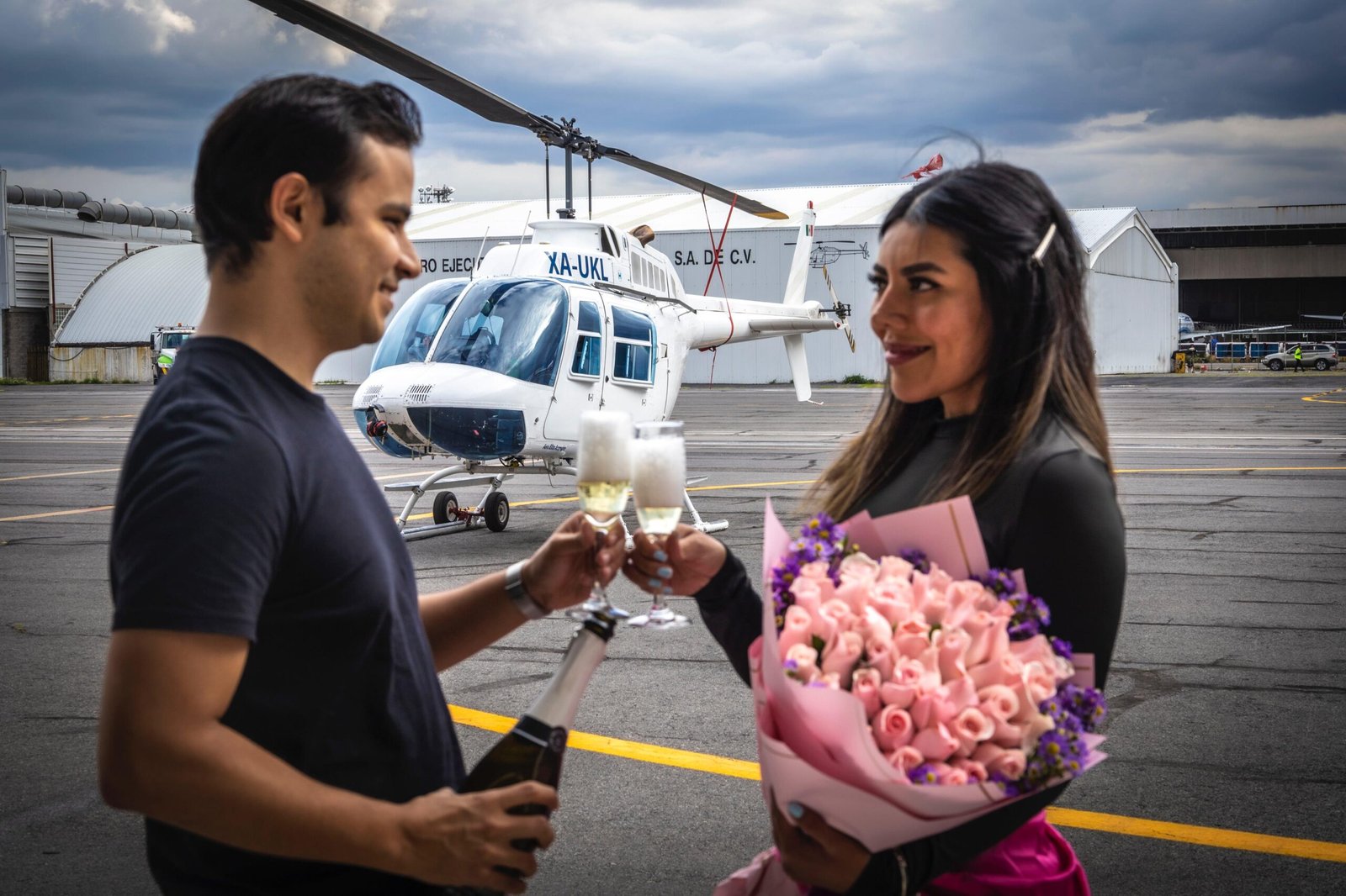 El primer brindis de la pareja a la media noche.